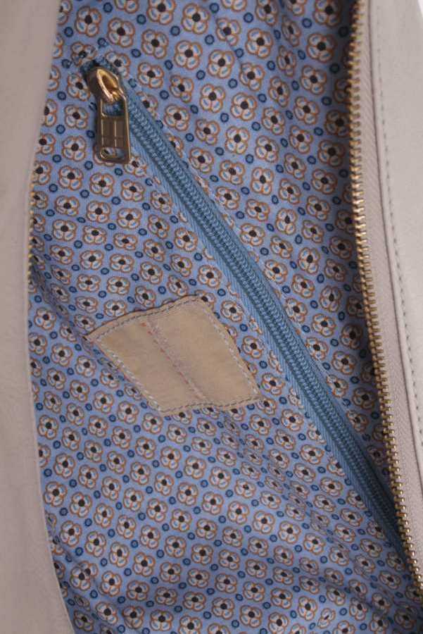 - The spacious interior of the bag has a zippered compartment and 2 open compartments opposite